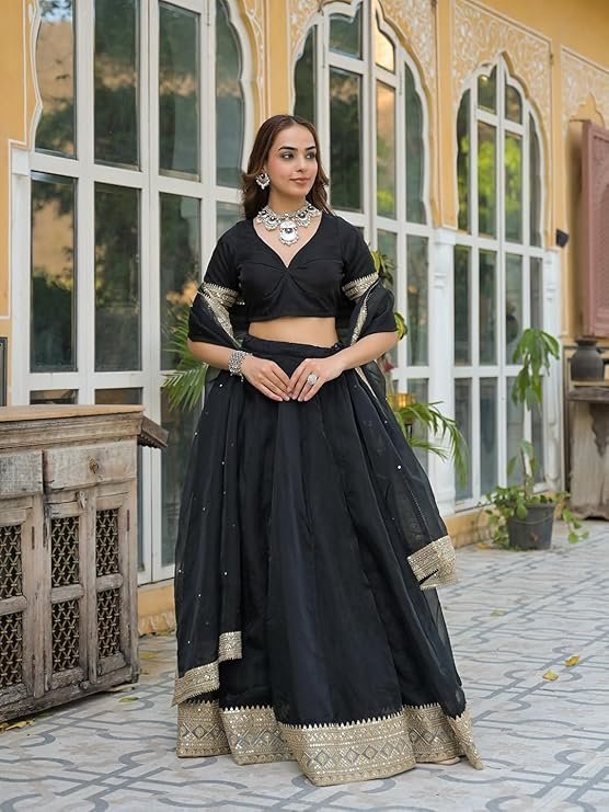 Be the first to review “Black Solid Organza Lehenga with Choli and Dupatta”