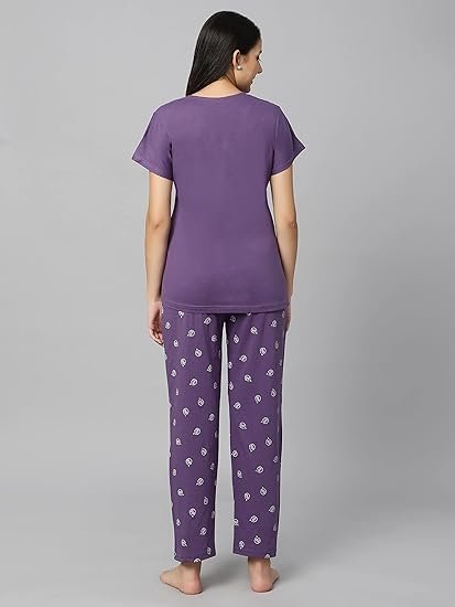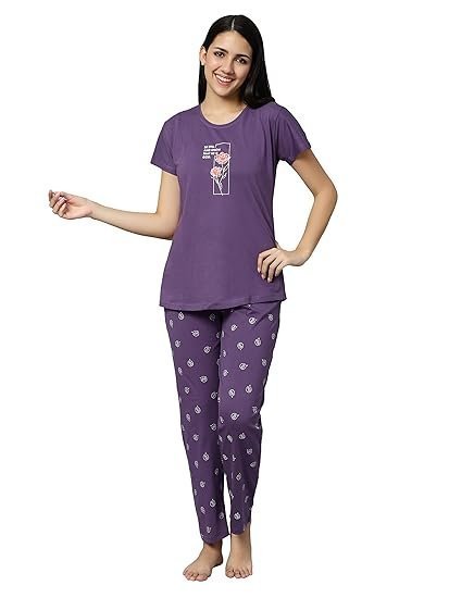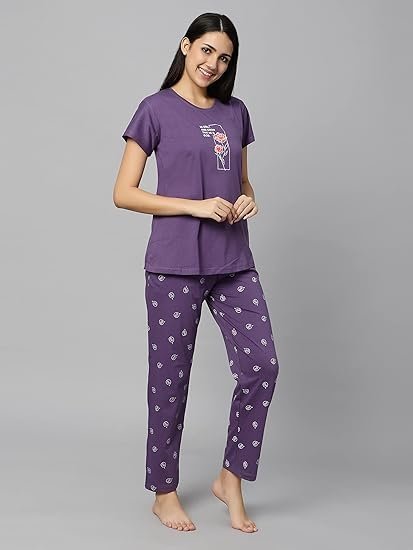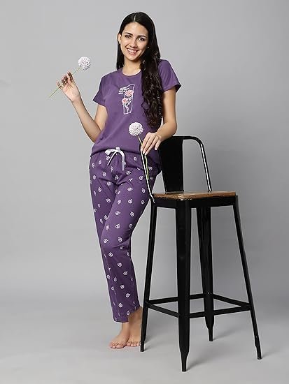 Cotton Night Suit for Women & Girls with Designed Top & Printed Pyjama Set Half Sleeves | Soft and Stretchy Lightweight Nightwear for Summer | StylishCotton Night Suit for Women & Girls with Designed Top & Printed Pyjama Set Half Sleeves | Soft and Stretchy Lightweight Nightwear for Summer | Stylish