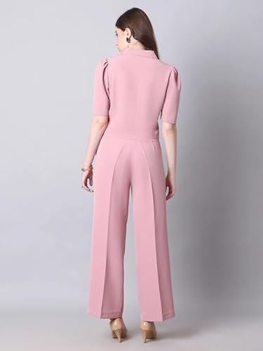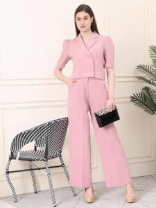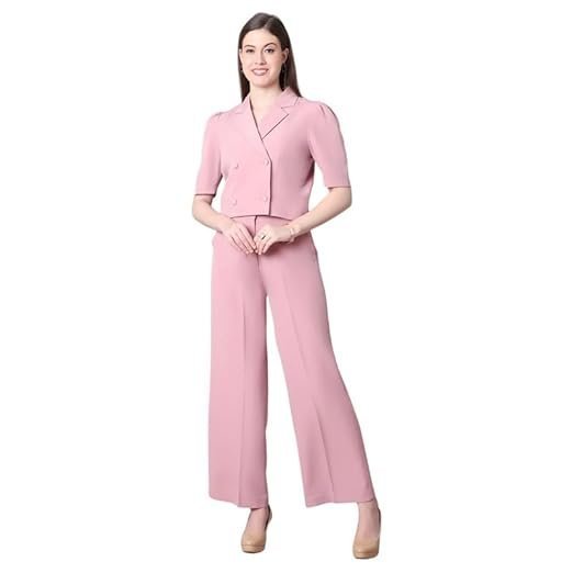 women BlezerElegant Blush Cord Set Wide-Leg Pant Suit