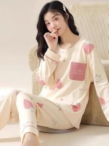 - Cute Korean Nightwear: Adorable bunny and heart prints for a stylish bedtime look