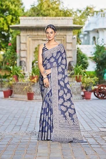 Women’s Lucknowi Chikankari Linen cotton Woven Sarees For Women with Blouse sarees for Women