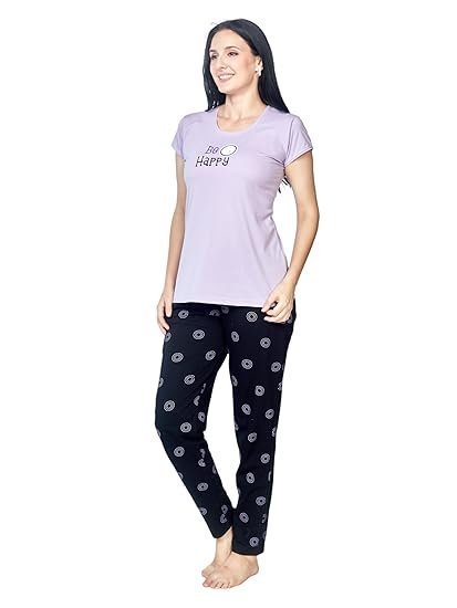 - Soft & Stretchy Fabric: This night dress for woman is made from breathable cotton that feels soft and gentle on the skin. The T-shirt and trousers in this night suit offer all-night comfort, making it perfect for lounging or restful sleep.