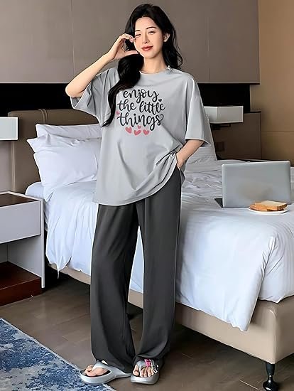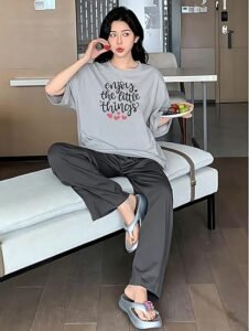 • Soft Cotton Fabric: Experience ultimate comfort with our nightdress T-shirt and pyjama set made from soft, breathable cotton, perfect for a restful night’s sleep