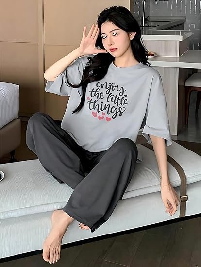 Printed Round Neck Short Sleeve Nightsuit Set | Pajama Set | Casual Night Dress for WomenPrinted Round Neck Short Sleeve Nightsuit Set | Pajama Set | Casual Night Dress for Women