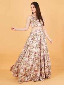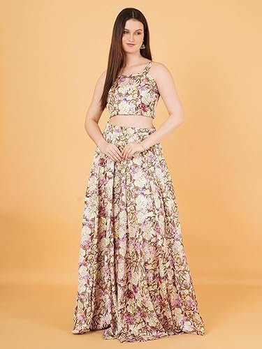Floral Two-Piece Lehenga Set, Crop Top with Long Skirt, Vintage Print Indo-Western Dress