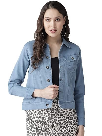 - Crop denim jacket with spread collar, full sleeve, contrast stitching and straight bottom hem