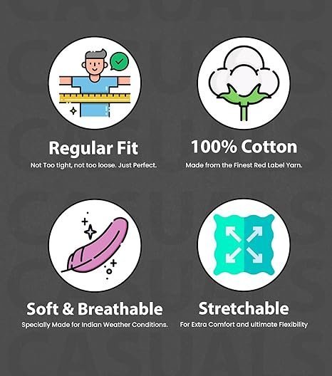 - 100% Cotton Fabric: Soft, lightweight, and breathable for all-day comfort.