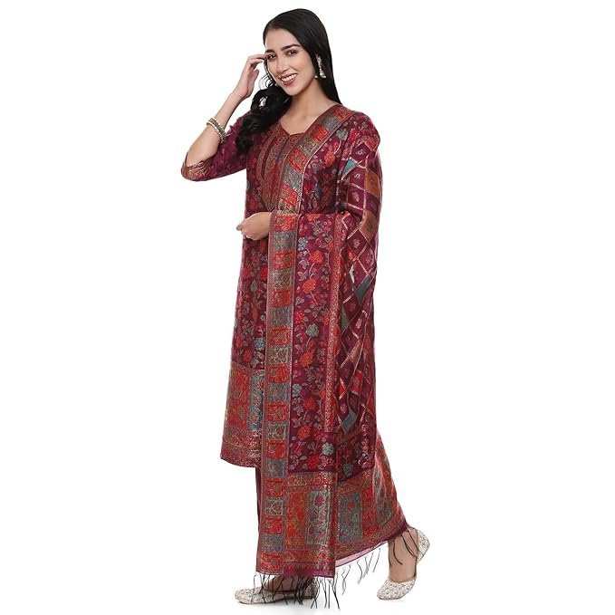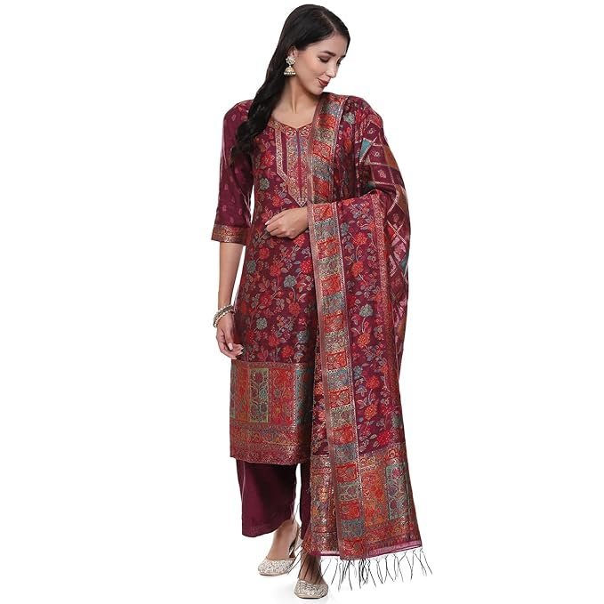 Biba Women Yarndyed Straight Kurta Cotton Blend Suit Set(SKDARTSY WE9102_Red_M)