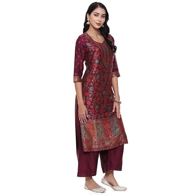 Biba Women Yarndyed Straight Kurta Cotton Blend Suit Set