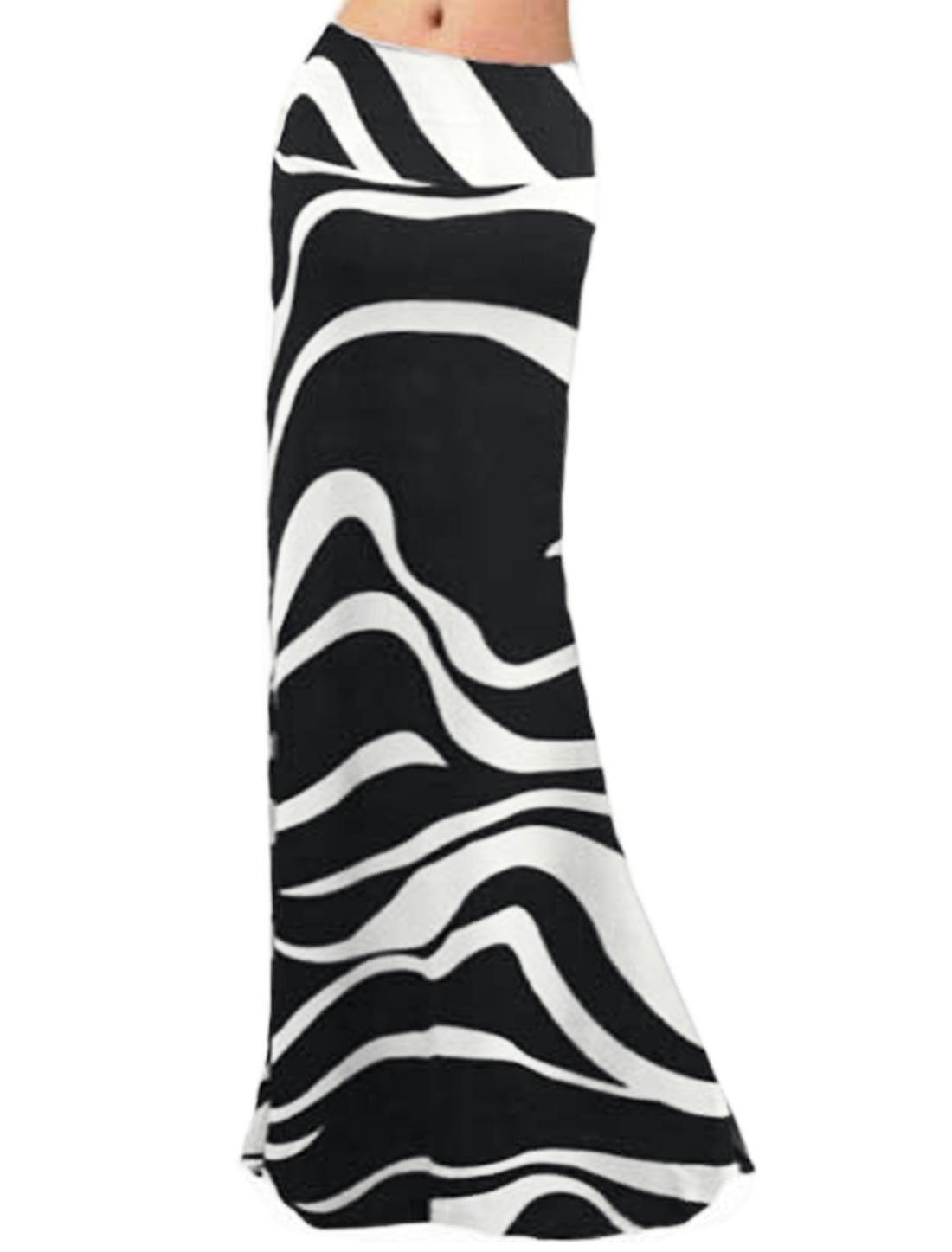 Women High Waist Zebra Stripes Wide Band Maxi Skirt