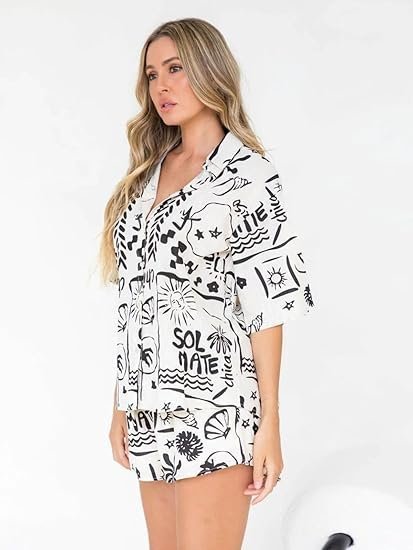 - Trendy Co-Ord Set Design: This travel outfit for women features a loose-fitting top with half sleeves and matching shorts, adding a fashionable edge to traditional beachwear.