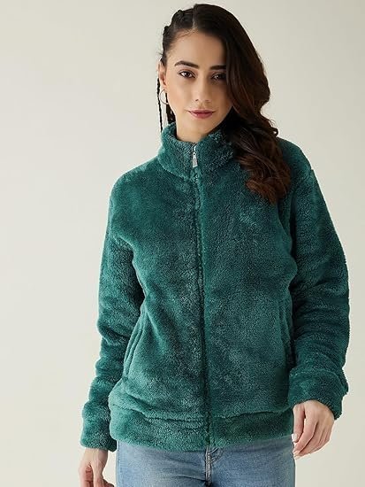 Women winter jacketWomen Solid Full Sleeve Fur Standard Length Jacket For Winter