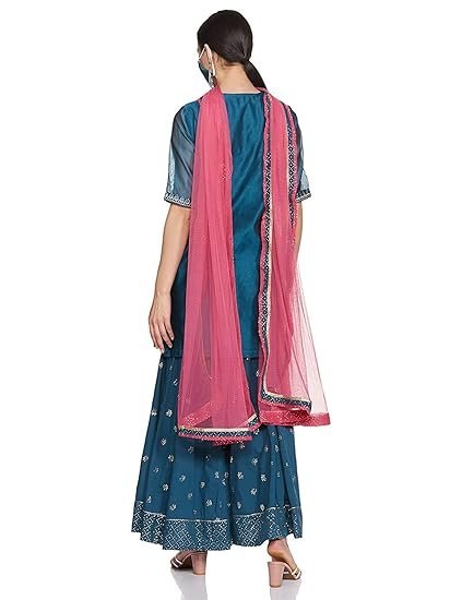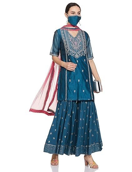 Be the first to review “Women Teal Poly Cotton Kurta Garara Suit Set”