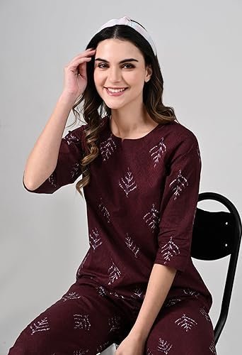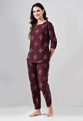 Women T-shirtsWomen Women’s Printed Cotton Night Wear Top and Bottom Night Suit Set