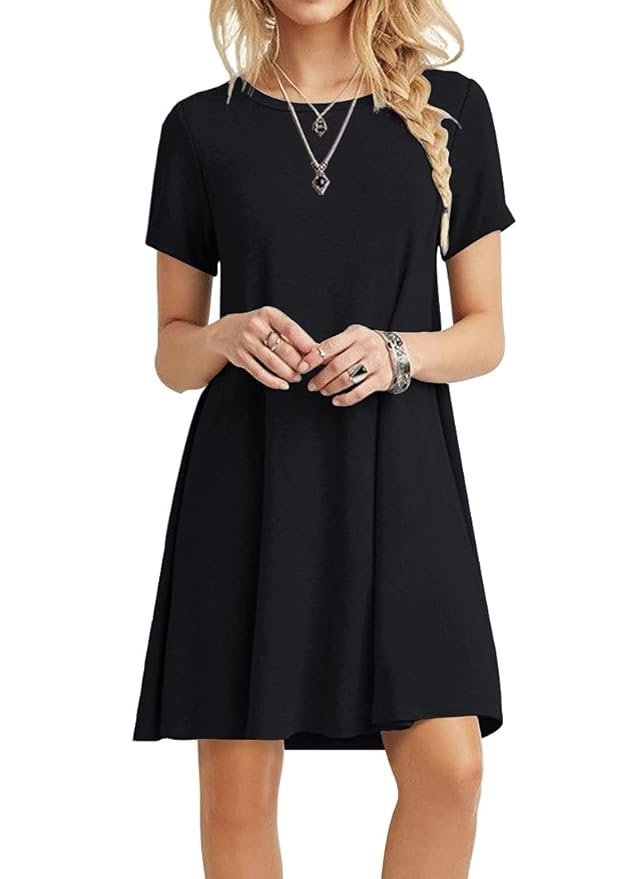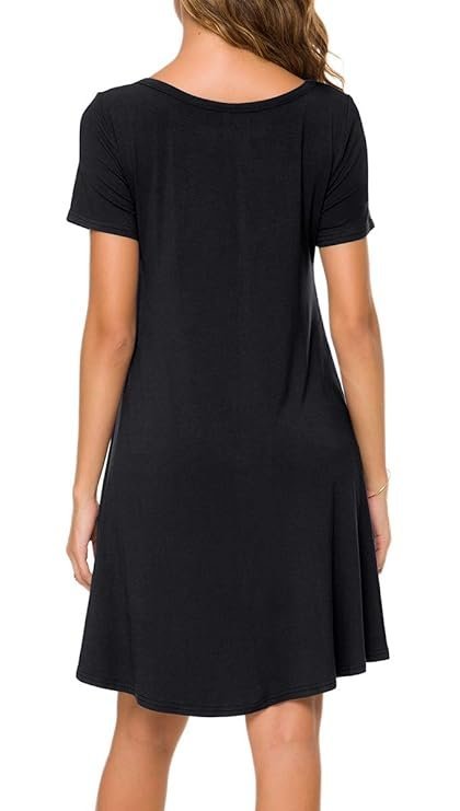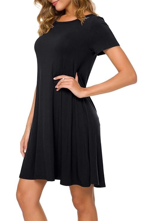 Women’s 2023 Summer Casual T-Shirt Dress Short Sleeves Swing Boho Beach Cover up, Black, Medium