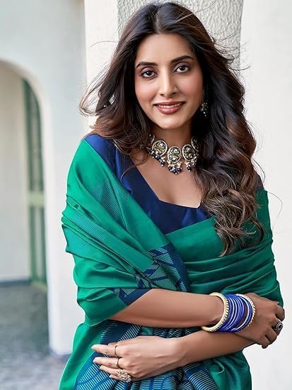 - Color :: Saree Color : Teal Green || Blouse Color : Navy Blue & Teal Gree & || Disclaimer : Colour Of The Actual Product May Slightly Vary Due To Different Photographic Lighting Sources Or Your Display Color Settings Or Screen Type.