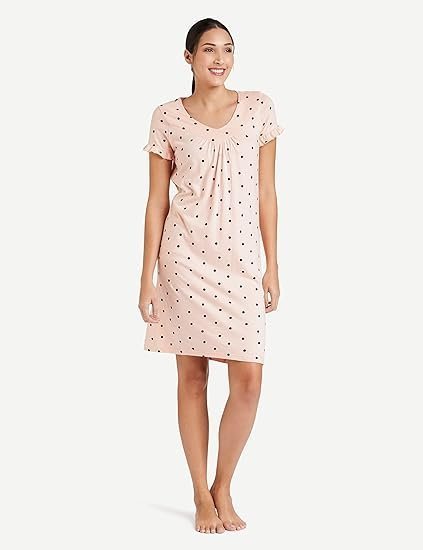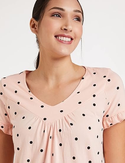 - PRODUCT DETAILS: Knee-length, regular fit nighty featuring all-over print, short sleeves, and gathered yoke detail in front.