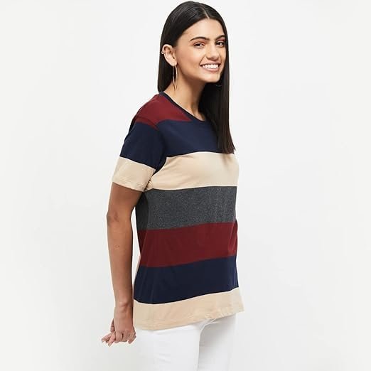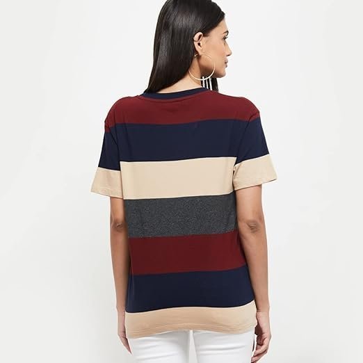 Women's Cotton Regular Fit Striped Round Neck T-ShirtWomen’s Cotton Regular Fit Striped Round Neck T-Shirt
