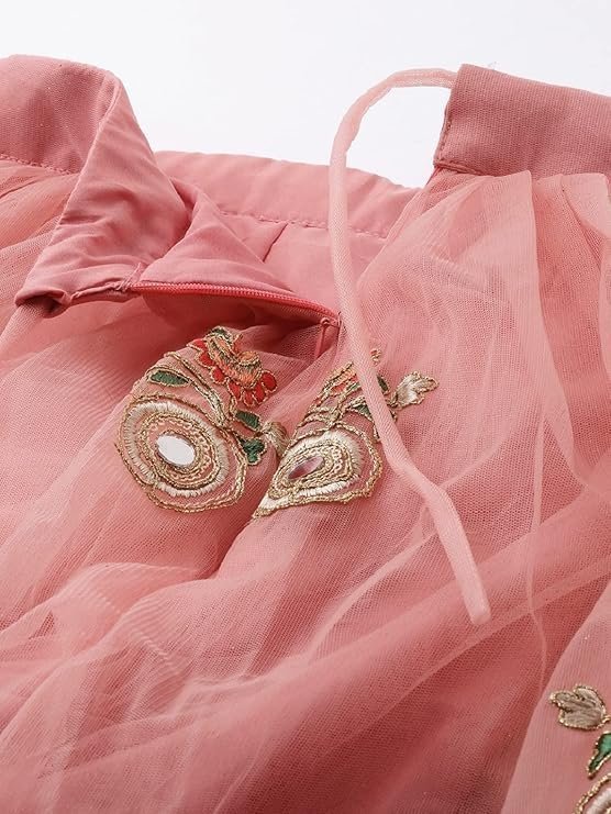 Women’s divine international trading co women’s net embroidered semi-stitched lehenga choli with dupatta (peach-wedding-girlish-latest-lehenga; free size;7315)