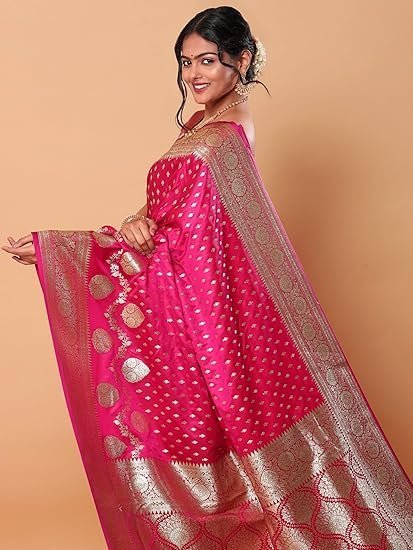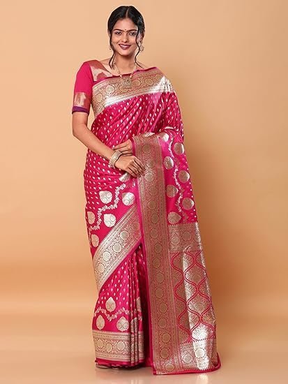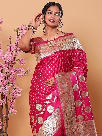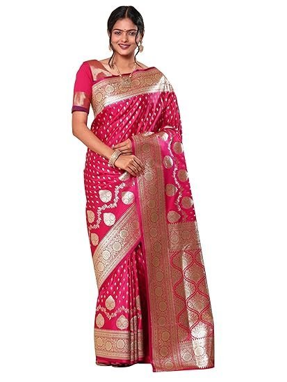 Women’s herclozet women’s banarasi katan silk gold zari saree-6.3 mtr(dark pink;golden)