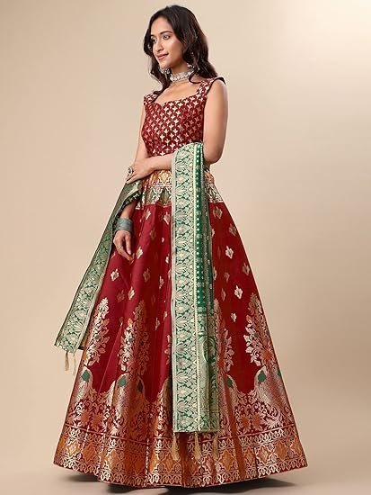 Women's Jacquard Semi-Stitched Lehenga choli(Indra)Women’s Jacquard Semi-Stitched Lehenga choli(Indra)