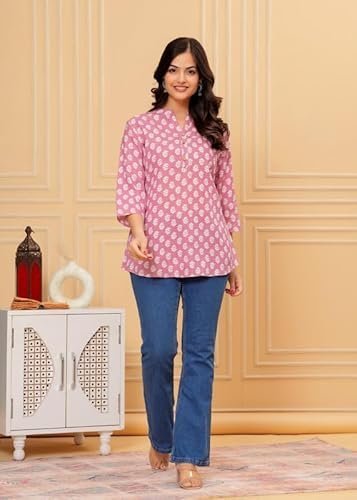 - Stylish and Versatile Design:This short kurti features a contemporary cut that pairs effortlessly with jeans, leggings, or skirts. Its versatile design is suitable for casual outings, semi-formal events, and everything in between.