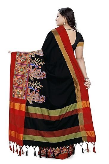- Saree fabric : Cotton Silk Blouse fabric : Cotton Silk Work : Heavy Kutchi Work With Peacock Design
