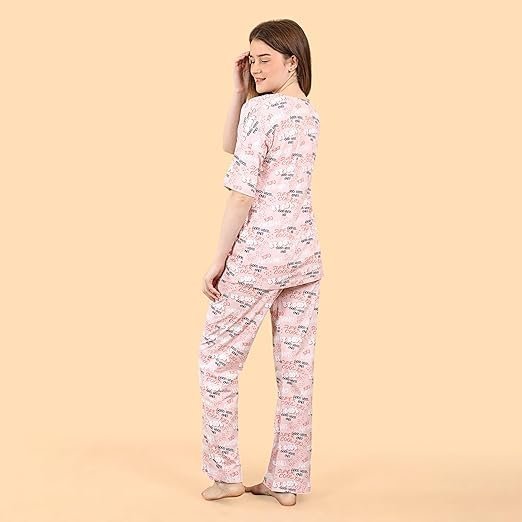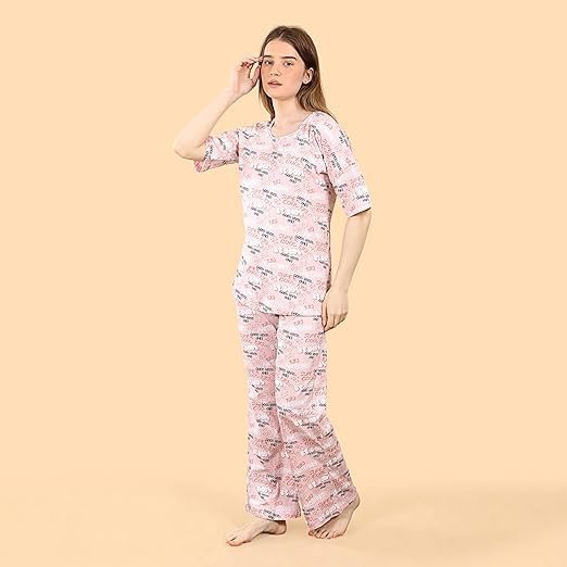 Women’s Night Suit | 100% Knitted Cotton Printed Half Sleeve Top & Pyjama Set | Comfortable Ladies Nightwear & Loungewear