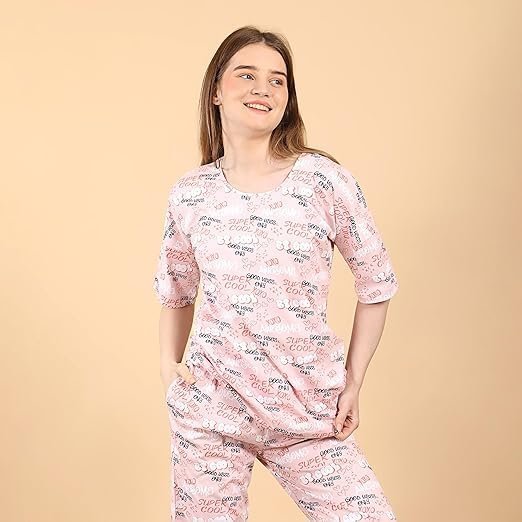 Women’s Night Suit | 100% Knitted Cotton Printed Half Sleeve Top & Pyjama Set | Comfortable Ladies Nightwear & LoungewearWomen’s Night Suit | 100% Knitted Cotton Printed Half Sleeve Top & Pyjama Set | Comfortable Ladies Nightwear & Loungewear