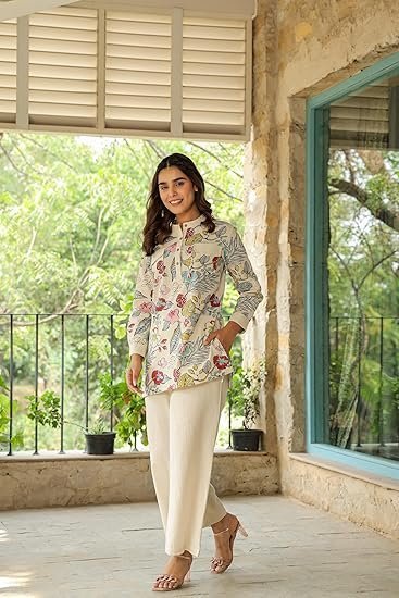 Be the first to review “Women’s Organic Printed Off White Pure Cotton Pyjama Top Night Suit Set”