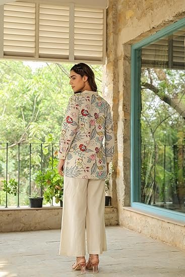 Women's Organic Printed Off White Pure Cotton Pyjama Top Night Suit SetWomen’s Organic Printed Off White Pure Cotton Pyjama Top Night Suit Set