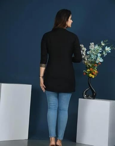 Women's Solid Rayon 3/4th Sleeves Black Short KurtiWomen’s Solid Rayon 3/4th Sleeves Black Short Kurti