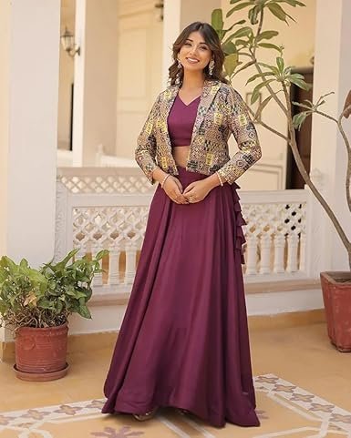 Be the first to review “Womens Wine Color Readymade Lehenga Choli With Jacket”